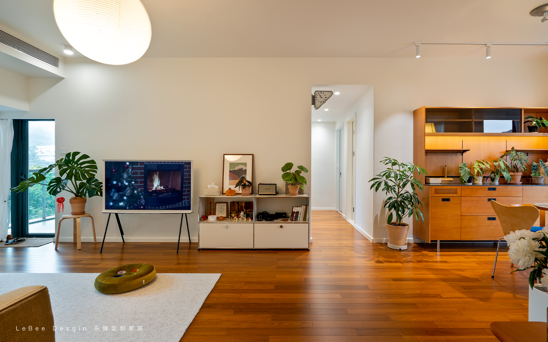 整體以中古包豪為主,柔和的奶白色為主色調,開放式設計,打破空間局限,小家也顯寬敞又通透。